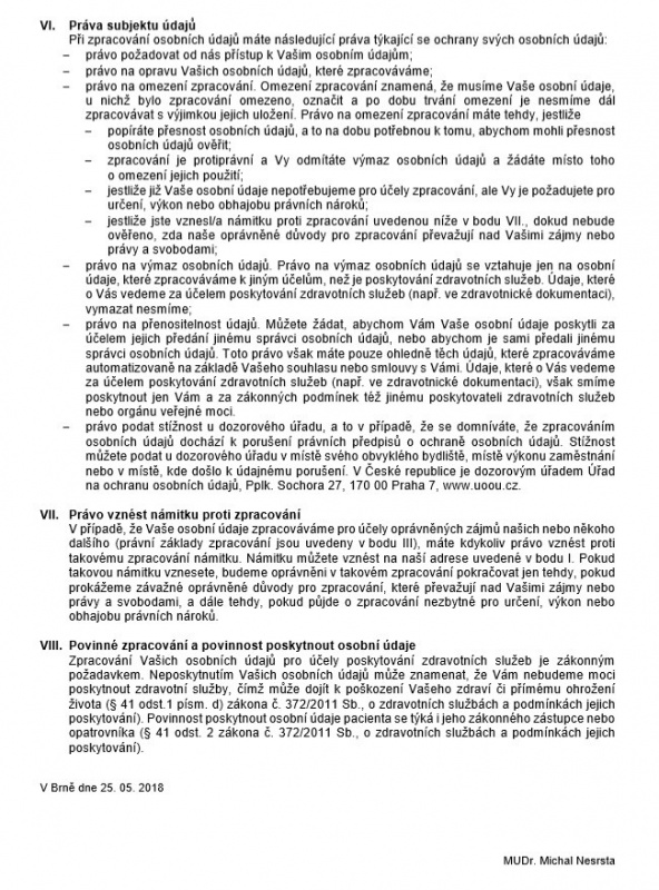 Informace pro pacienty o zpracování osobních údajů (GDPR)